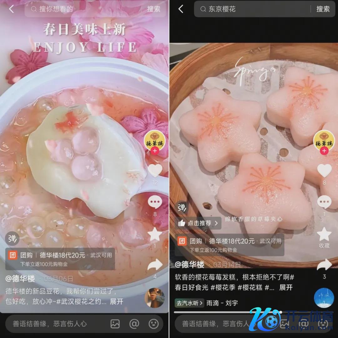 又如,德华楼集结武汉樱花季推出“樱花桃桃豆花”“樱花莓莓发糕”等产物,并在抖音发布樱花主题短视频,通过高颜值产物与地域文化象征的绑定,引发用户拍照打卡和传播生机。数据自满,德华楼在武汉樱花季发布的短视频,单条曝光量最精粹30万。