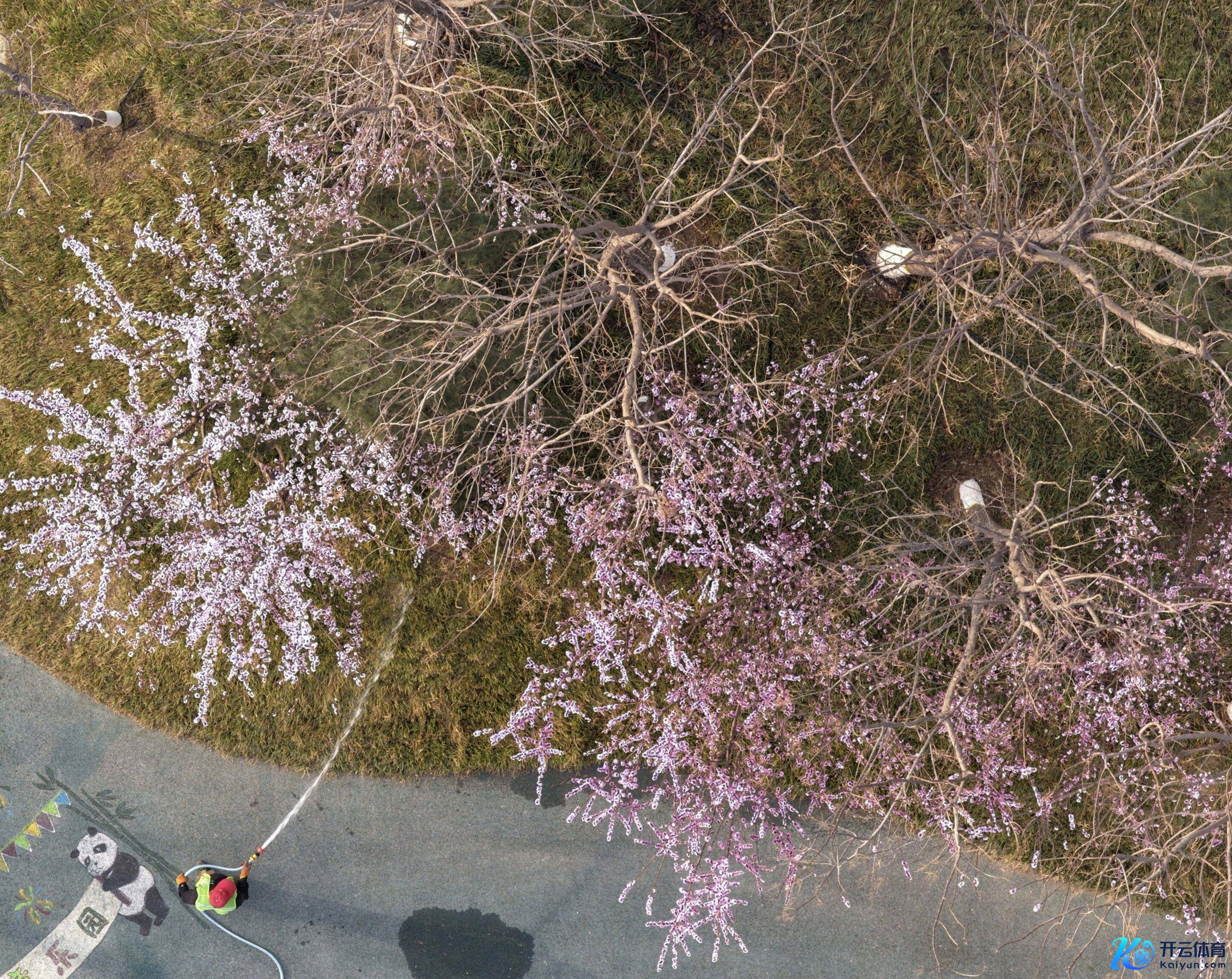 ↑3月27日,工东谈主在雄安新区悦容公园浇花(无东谈主机像片)。