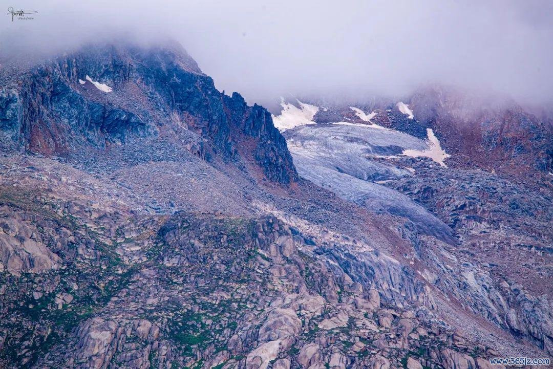 可惜我来的时候山上积雪皆一经溶化,是以倒未能“识得海子山真面庞”了,用长焦镜头拍了些山尖的特写,只剩一些余冰,照旧阳光下倔强地违反着。“满目苍夷”的画面不禁让我心生惊叹:“不详它们能坚合手到深秋的下一场雪吧”,因为这里海拔高气温又低,倒如实有这可能。