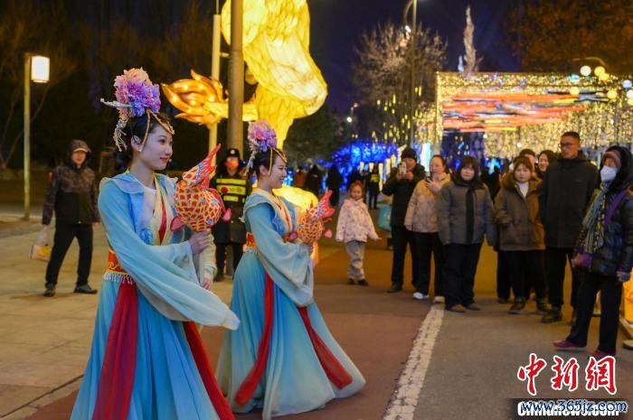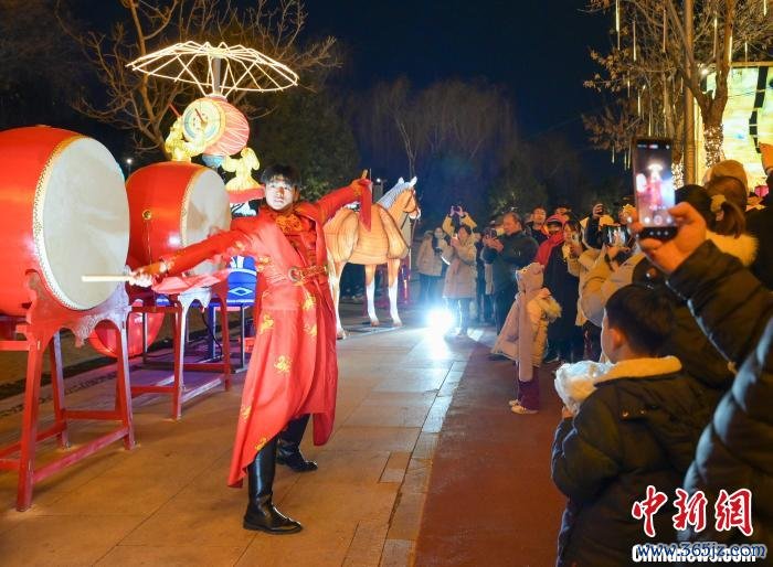 图为1月22日晚,河北省唐山市南湖旅游景区,习惯演员正在扮演。赵杰 摄