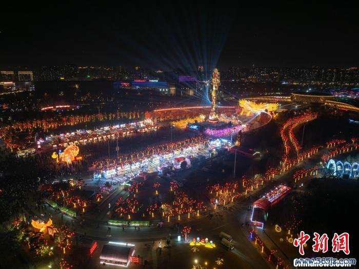 图为1月22日晚,河北省唐山市南湖旅游景区,灯会现场献技灯光秀。(无东说念主机相片)赵杰 摄