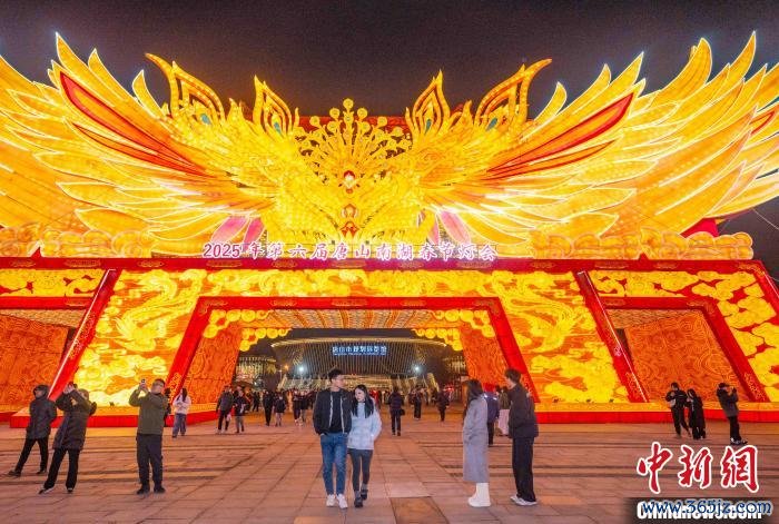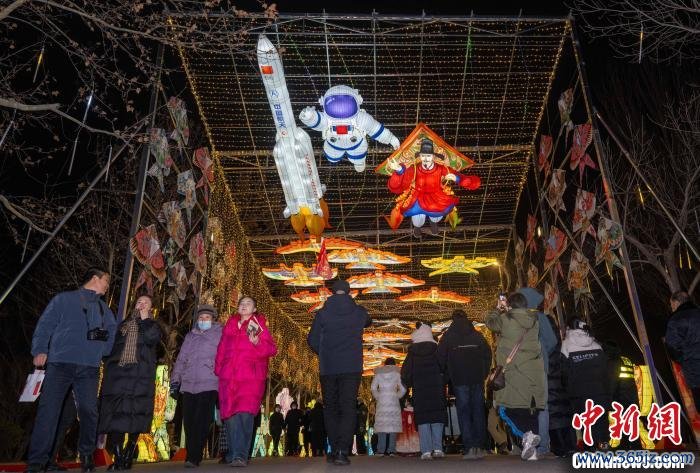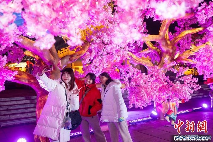 图为1月22日晚,河北省唐山市南湖旅游景区,搭客在灯会现场拍照迷恋。赵杰 摄