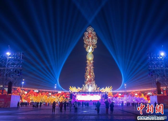 图为1月22日晚,河北省唐山市南湖旅游景区,灯会现场献技灯光秀。赵杰 摄