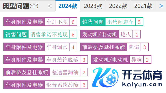 2024款车型在阛阓中,此车的主要投诉故障有: