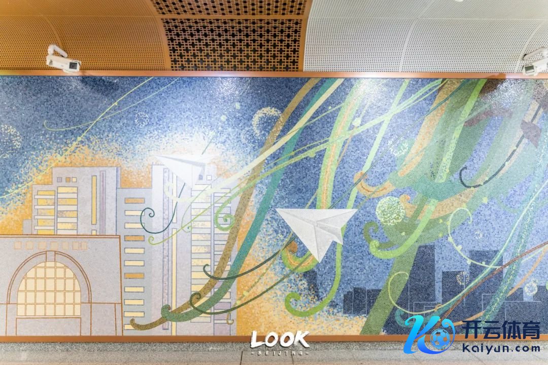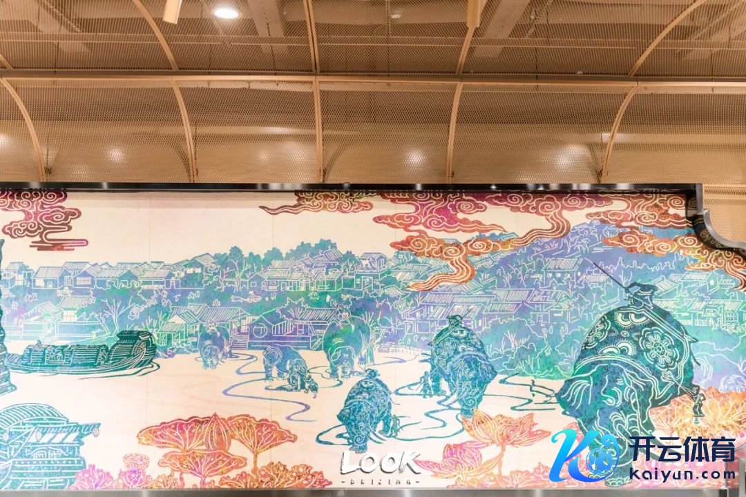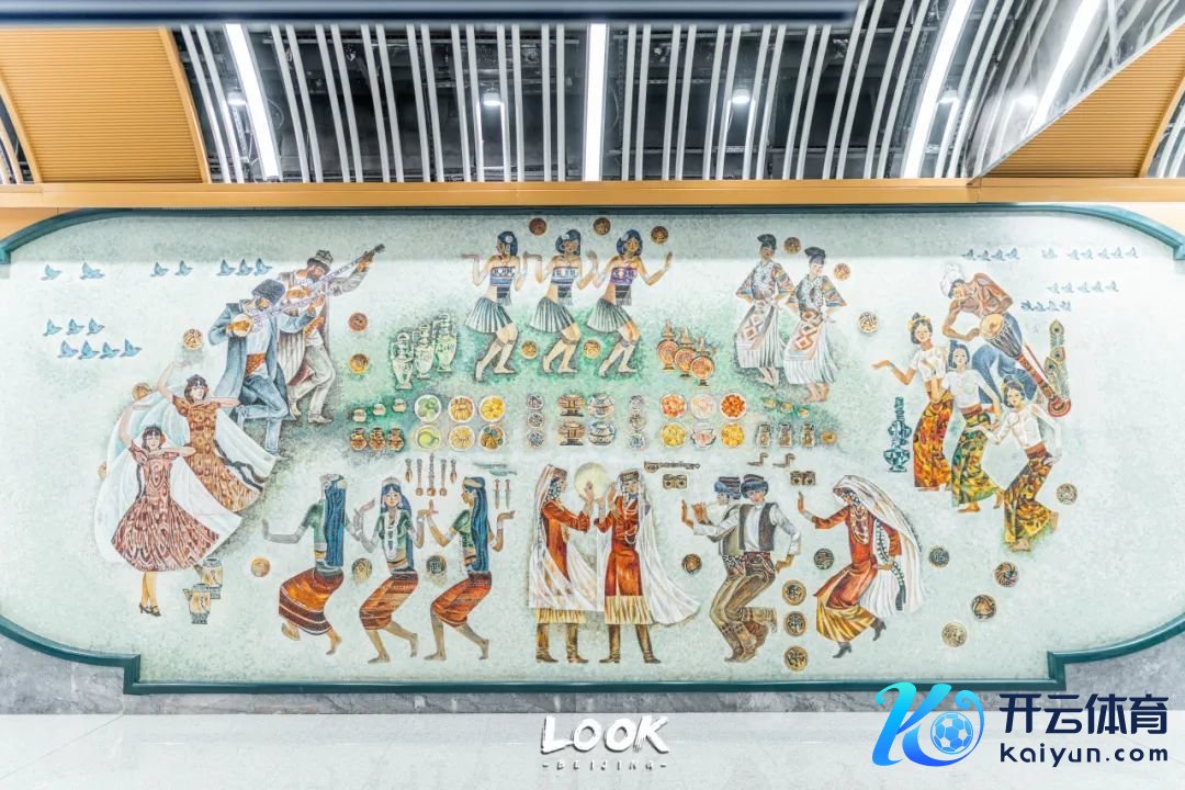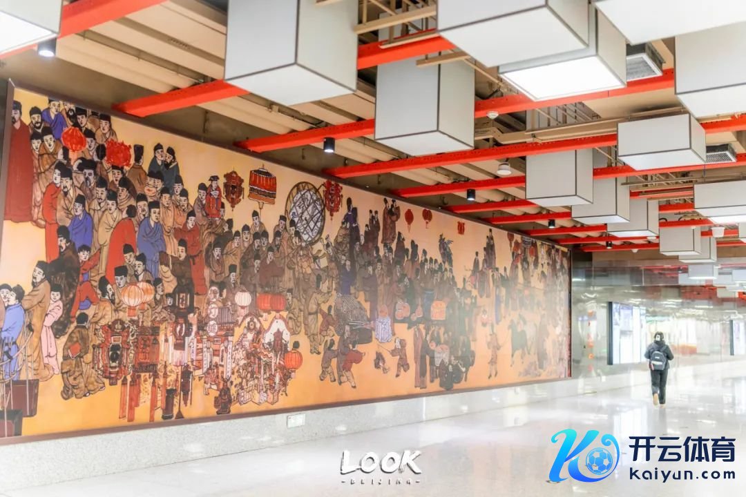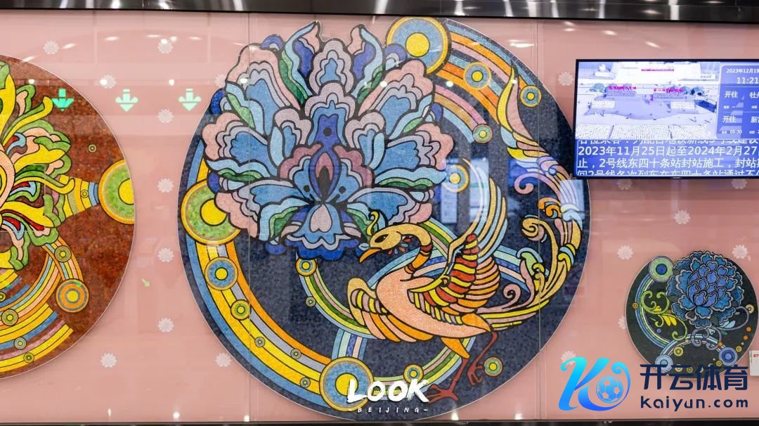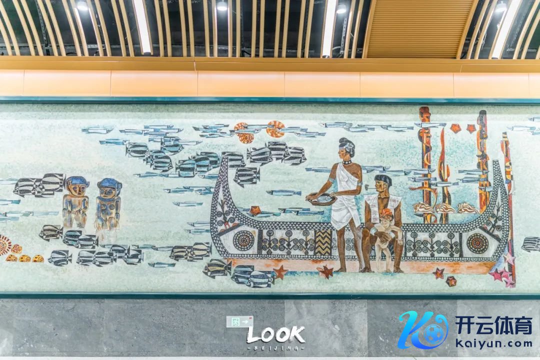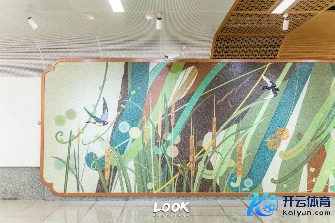 站厅顶部还有绘有“双鲤戏水”的艺术作品