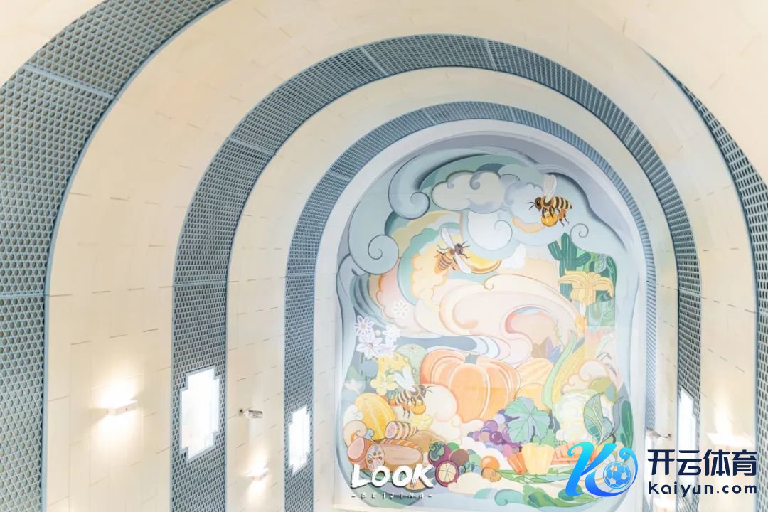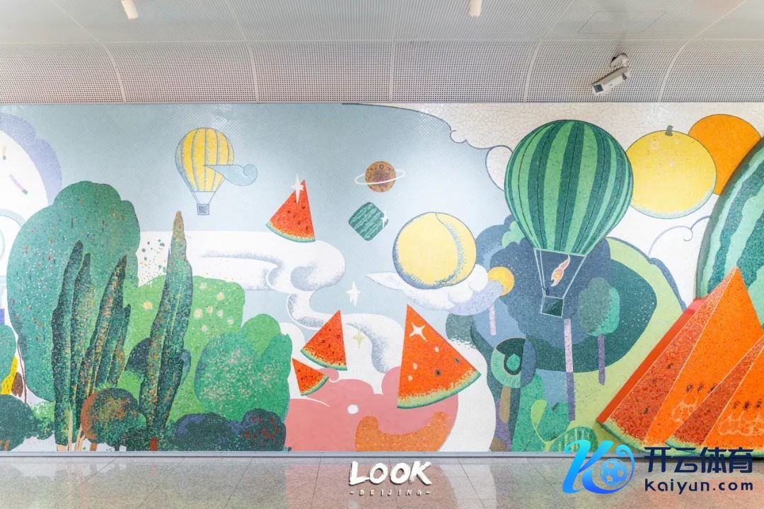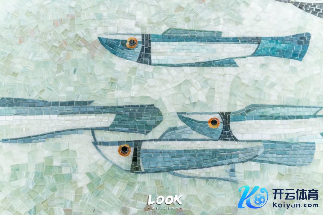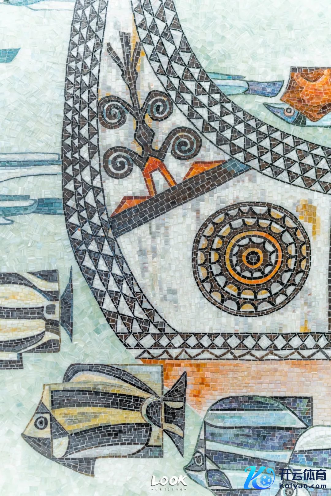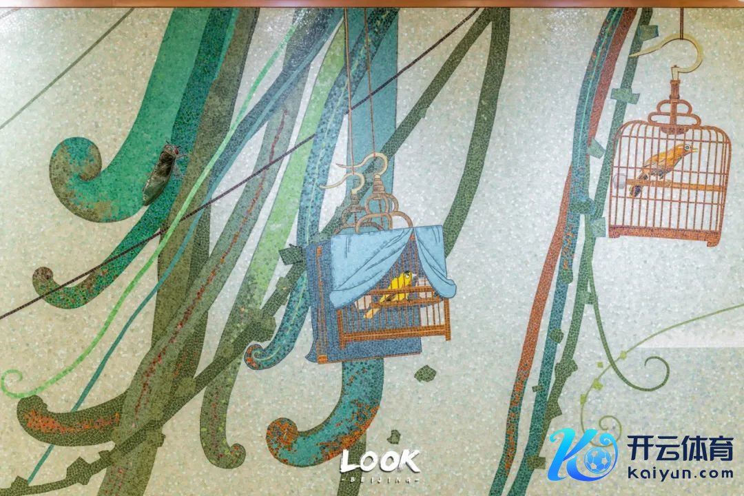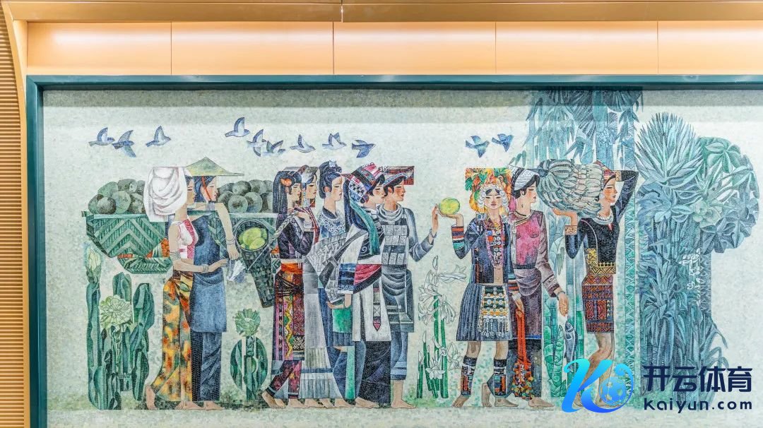 站厅顶部还有绘有“双鲤戏水”的艺术作品