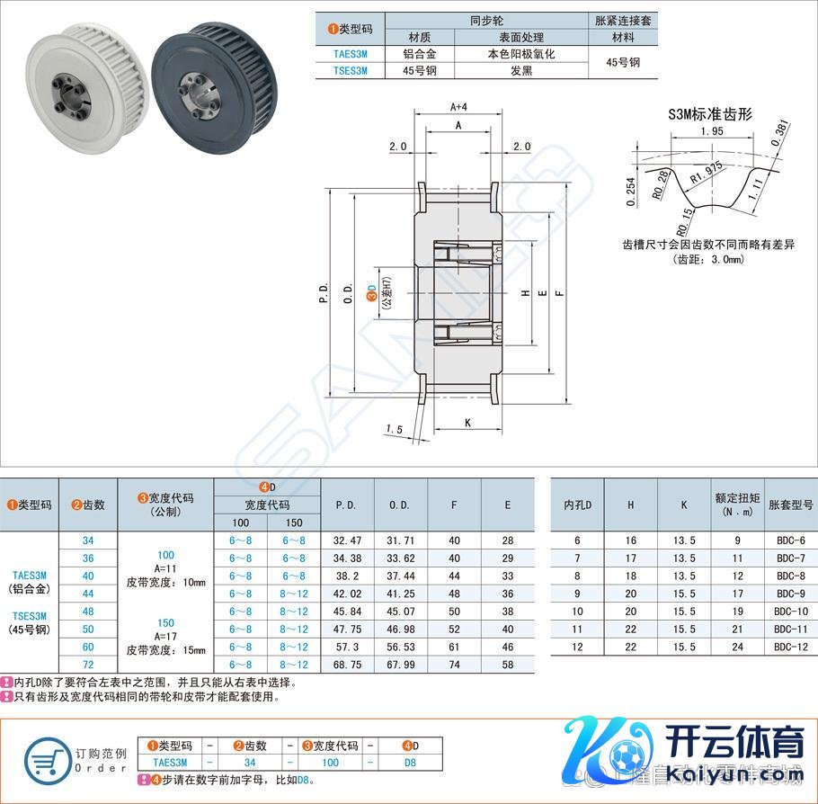 1.齿形类型:凭据同步带的齿形类型,接管相应的同步带轮齿形。