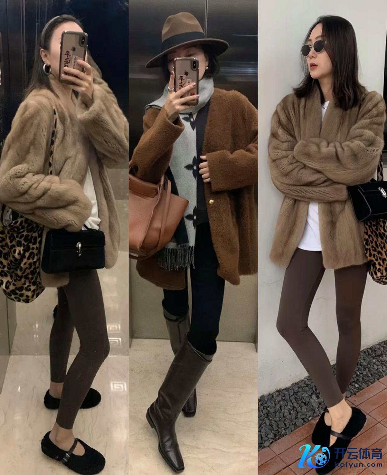 地面色是很容易营造出相沿氛围感的,尤其是同色系系数穿的时分,通过不同明暗浅深的热诚、以及不同面料营造出线索感,穿衣低调又大气。比如冬季娴雅精们很爱的毛毛外衣,这个时分就不要去搭配玄色打底袜了,遴荐与外衣同色系的咖增多纵向比例,营造相沿氛围的同期显高显瘦,更高档。