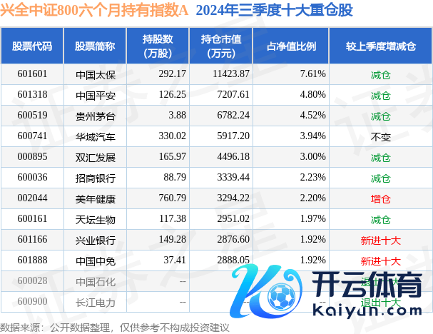 兴全中证800六个月握有指数A为指数型-股票基金,把柄最新一期基金季报显现,该基金钞票建树:股票占净值比94.0%,债券占净值比11.25%,现款占净值比0.2%。基金十大重仓股如下: