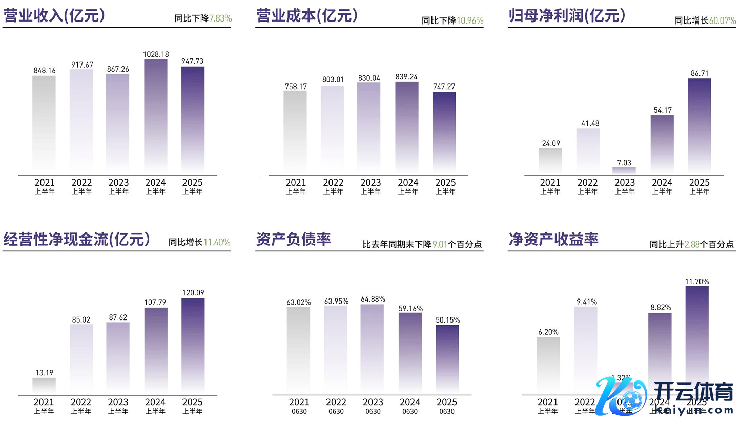 洛阳钼业(603993.SH)公布2025半年度论说。上半年公司收尾营业收入947.73亿元,同比减少7.83%;营业成本为747.27亿元,同比下降10.96%;归母净利润再创同期历史新高为86.71亿元,同比增长60.07%;谋划性现款120.09亿元,同比增长11.40%。