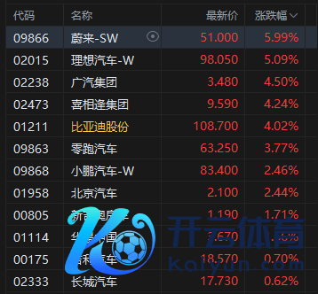 汽车股涨幅居前,蔚来涨超5%。中国汽车工业协会15日发布《汽车整车企业供应商账款支付法式倡议》,围绕订单阐明、托付与验收、支付与结算、契约期限等要道时势,对整车企业与供应商企业采购契约中相关实质作出法式倡议。