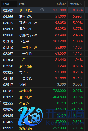 9月15日音问,港股三大指数集体高涨。结束午间收盘,恒生指数涨0.29%,报26463.48点,恒生科技指数涨1.11%九游体育app娱乐,国企指数涨0.34%。盘面上,科网股涨多跌少,哔哩哔哩涨超5%,阿里巴巴涨近3%,网易、小米涨超1%,百度、联思跌超1%;锂电板股大涨,宁德期间涨超6%;汽车股涨幅居前,蔚来涨超5%;生物技艺股走高,药捷安康涨超33%;新蹧跶主张股分化,沪上大姨涨超8%,泡泡玛特跌超7%。