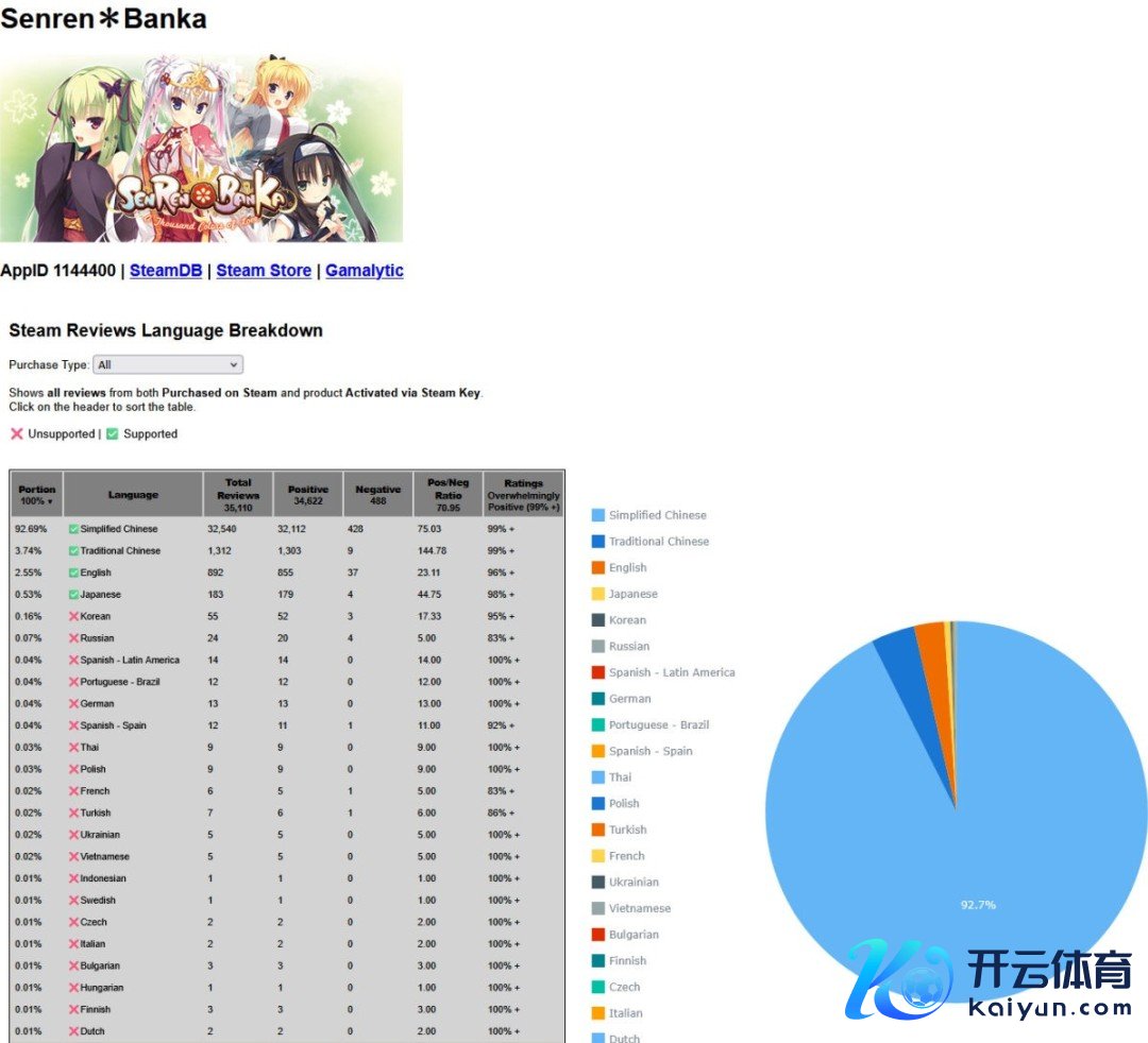 把柄Steam数据分析器用Steam Scout的数据,从说话评测占比来看,简体汉文用户占据了绝大大齐,其次是繁体汉文用户,而日语用户反而占比最低。由此可见现金九游体育app平台,本作的告捷与国内玩家的流传甚广的梗文化密弗成分。