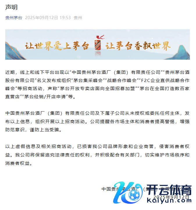 茅台集团:未授权或寄予任何主体发布或组织“茅台集采峰会”等招商举止九游体育娱乐网茅台集团:未授权或寄予任何主体发布或组织“茅台集采峰会”等招商举止
