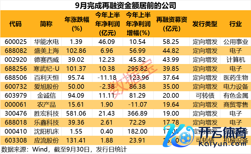 9月份A股再融资完成领域环比增近30% 6家公司募资超35亿元9月份A股再融资完成领域环比增近30% 6家公司募资超35亿元