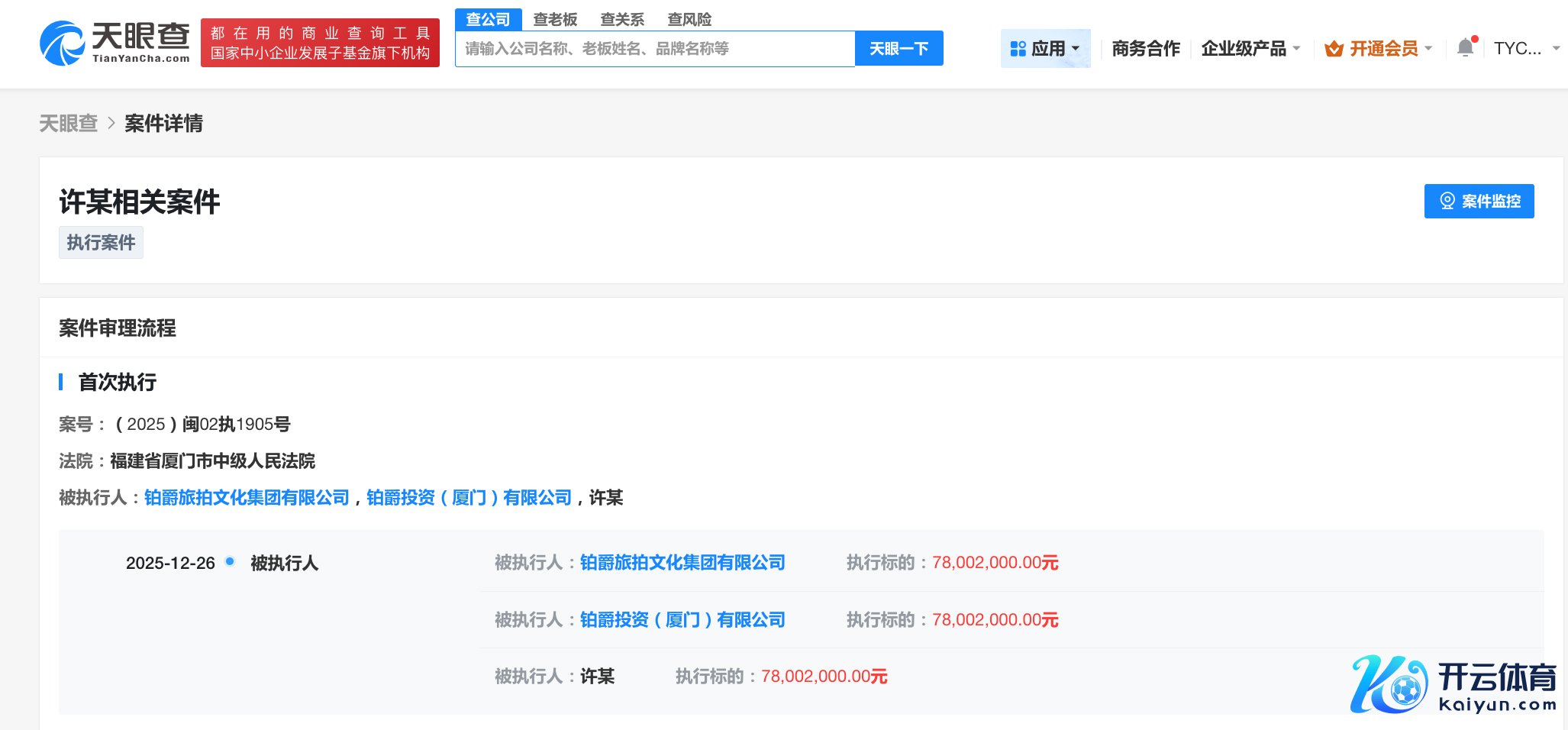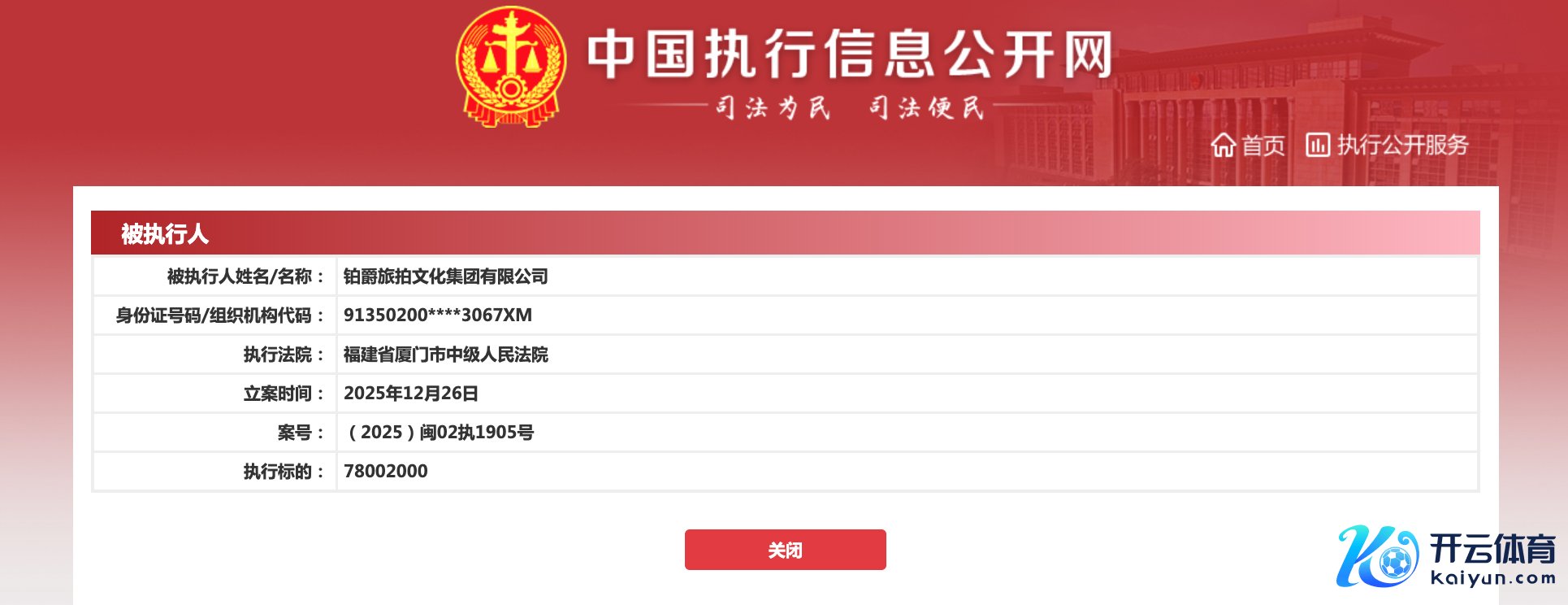 中新网12月30日电(吴家驹)中国推行信息公开网表示,近日,铂爵旅拍文化集团有限公司等新增一则被推行东说念主信息,推行方向7800.2万东说念主民币,推行法院为福建省厦门市中级东说念主民法院。