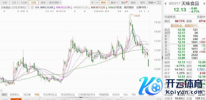 3月12日天味食物(603317.SH)跌近5%,报12.13元创逾四个月新低,总市值129.1亿元。