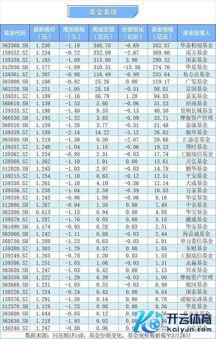 本周40只中证A500ETF再度全线下降,银华的A500ETF跌超2%领跌,基金总边界已跌破2300亿元,A500ETF华泰柏瑞、A500ETF南边、中证A500ETF国泰三只基金边界居前,折柳为382.87亿元、369.60亿元、299.32亿元。
