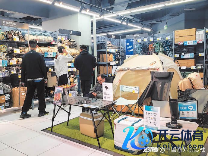 图为消耗者在北京的迪卡侬门店选购户外露营装备。