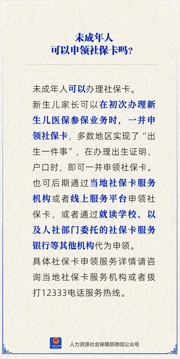 未成年东说念主不错申领社保卡吗?东说念主社部解答九游体育官网登录入口