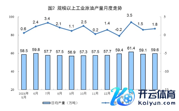 5月份,规上工业原油产量1847万吨,同比增长1.8%5月份,规上工业原油产量1847万吨,同比增长1.8%